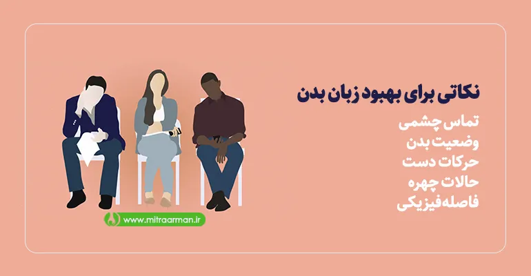 - مثبت: تماس چشمی خوب، صاف نشستن، لبخند زدن.